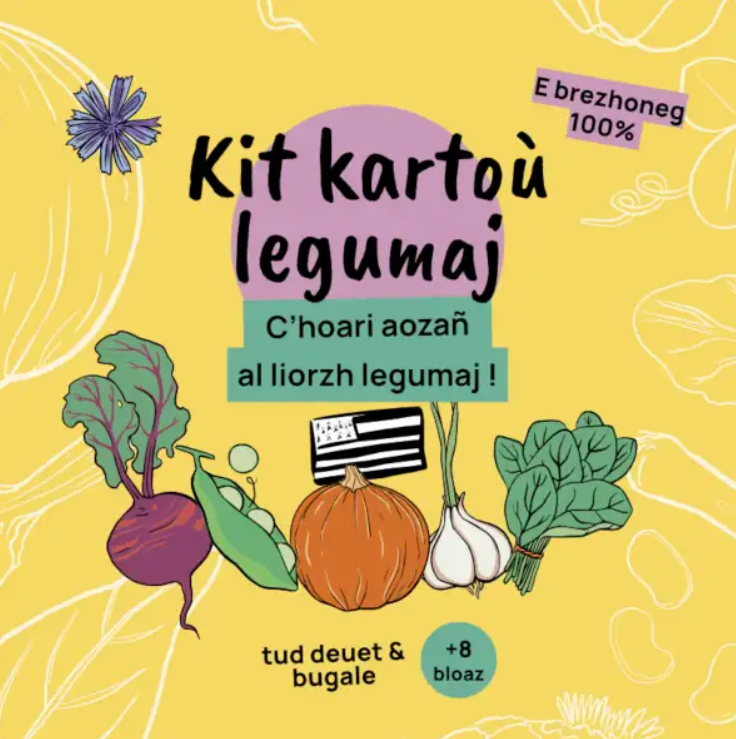 Un kit cartes légumes pour planifier son potager 100% en breton : 40 cartes légumes, 8 cartes familles botaniques, 2 cartes jetons, 1 calendrier, 1 livret explicatif de 20 pages. Pour adultes et enfants à partir de 8 ans. Frais d'envoi inclus.