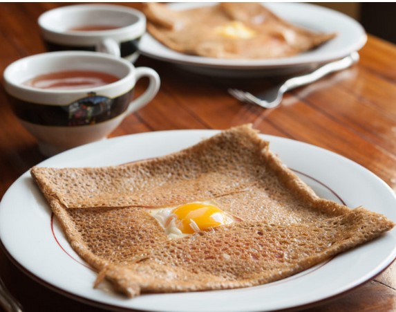 Les Crêpes sucrées (farine de froment) et les Galettes salées (farine de sarrasin dite "blé noir") seront faites à la main dans la salle.