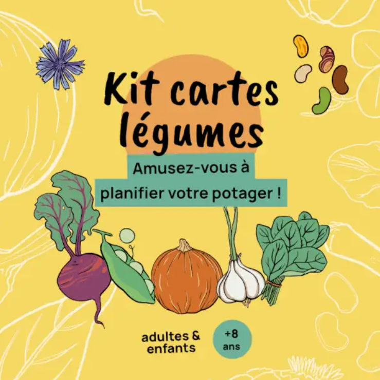 Un kit cartes légumes pour planifier son potager 100% en breton : 40 cartes légumes, 8 cartes familles botaniques, 2 cartes jetons, 1 calendrier, 1 livret explicatif de 20 pages. Pour adultes et enfants à partir de 8 ans. Frais d'envoi inclus.